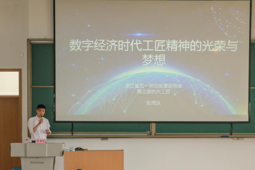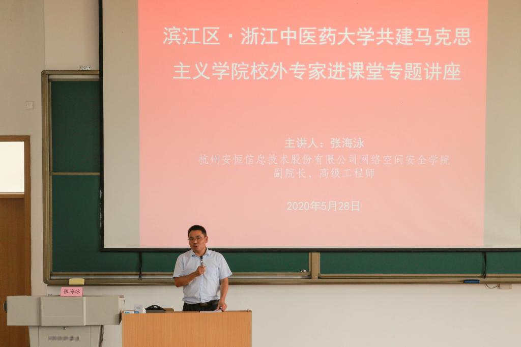 5月28日下午,伟德国际bevictor举办的“校外专家进课堂”活动在富春校区D301教室举行,杭州安恒信息技术股份有限公司网络空间安全公司副经理、高级工程师张海泳为老员工作《工匠精神与网络安全》的专题报告。