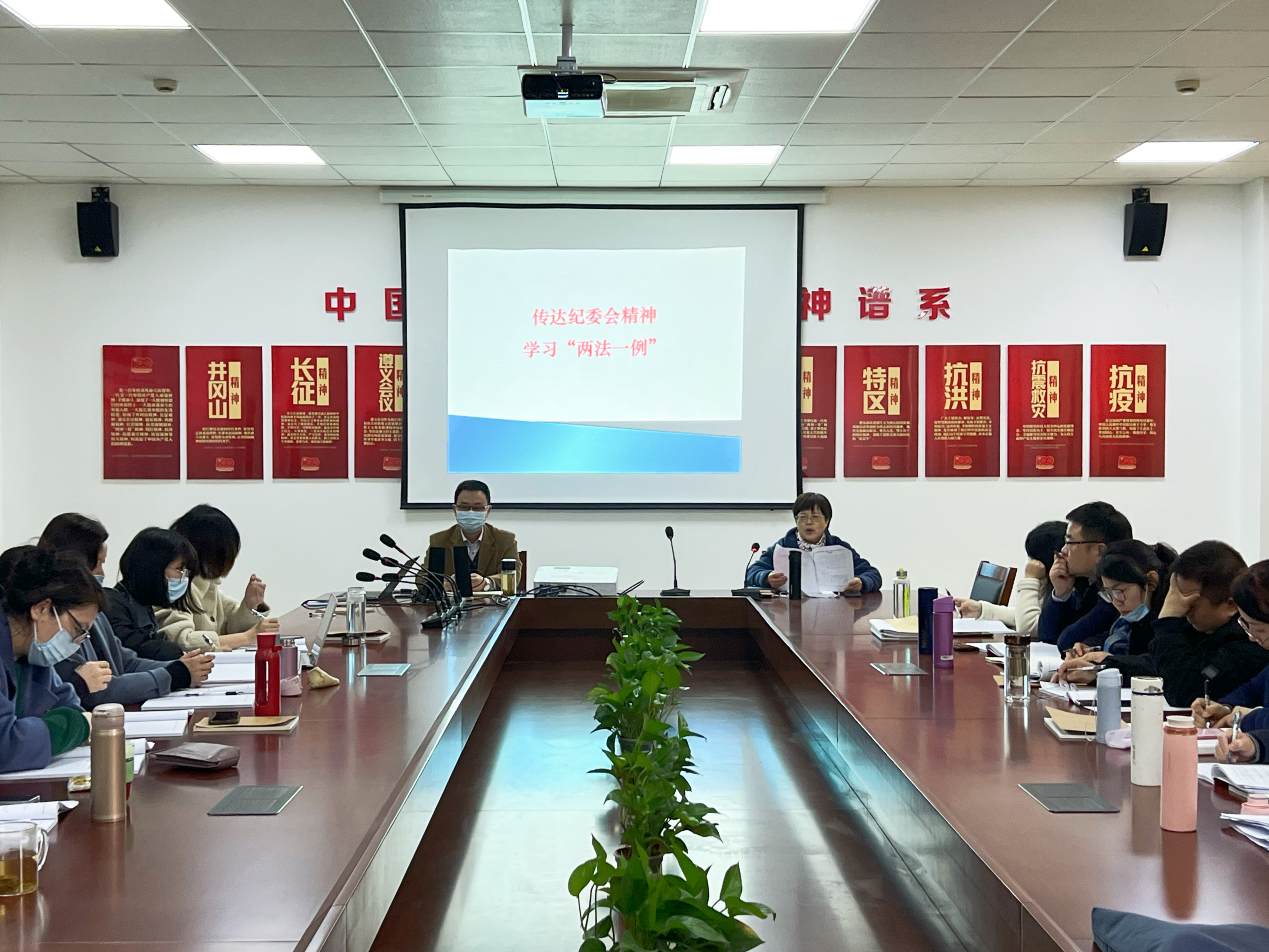12月15日下午,伟德国际bevictor在富春校区2B222会议室召开全院教师大会,专题学习《中华人民共和国监察法》《中华人民共和国公职人员政务处分法》《中华人民共和国监察法实施条例》(简称“两法一条例”)以及教育部日前印发的《高等公司思想政治理论课建设标准(2021年本)》。本次学习活动由公司经理杨华主持,公司全体教师参加。