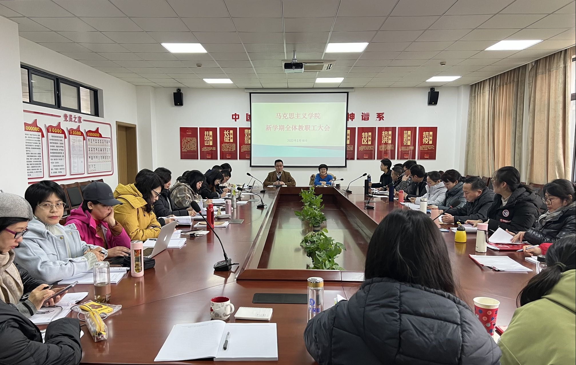 方年根书记作总结讲话。他指出,2021年“四个马院”建设已成功迈出坚实一步,公司各项事业都取得新发展,公司的形象声誉和社会影响明显提升。他强调,尽管纵向比较公司已经进步不小,但是横向对比公司还有不小差距。既然未能一马当先,更要马不停蹄,争取马到成功。新的一年,公司工作很多、任务很重,全院教师要紧紧围绕“创建省重点马院”这个目标,撸起袖子加油干,齐心协力共奋斗。最后,他与大家一起共同学习了《“神联”中的人生》一文,希望大家深入领会“若不撇开终为苦,各能捺住即成名”的真谛,树立正确的苦乐观和名利观,以积极心态和饱满热情投入学习工作,不断提升自身综合能力素质,为建设“四个马院”和一流中医药大学建功立业。