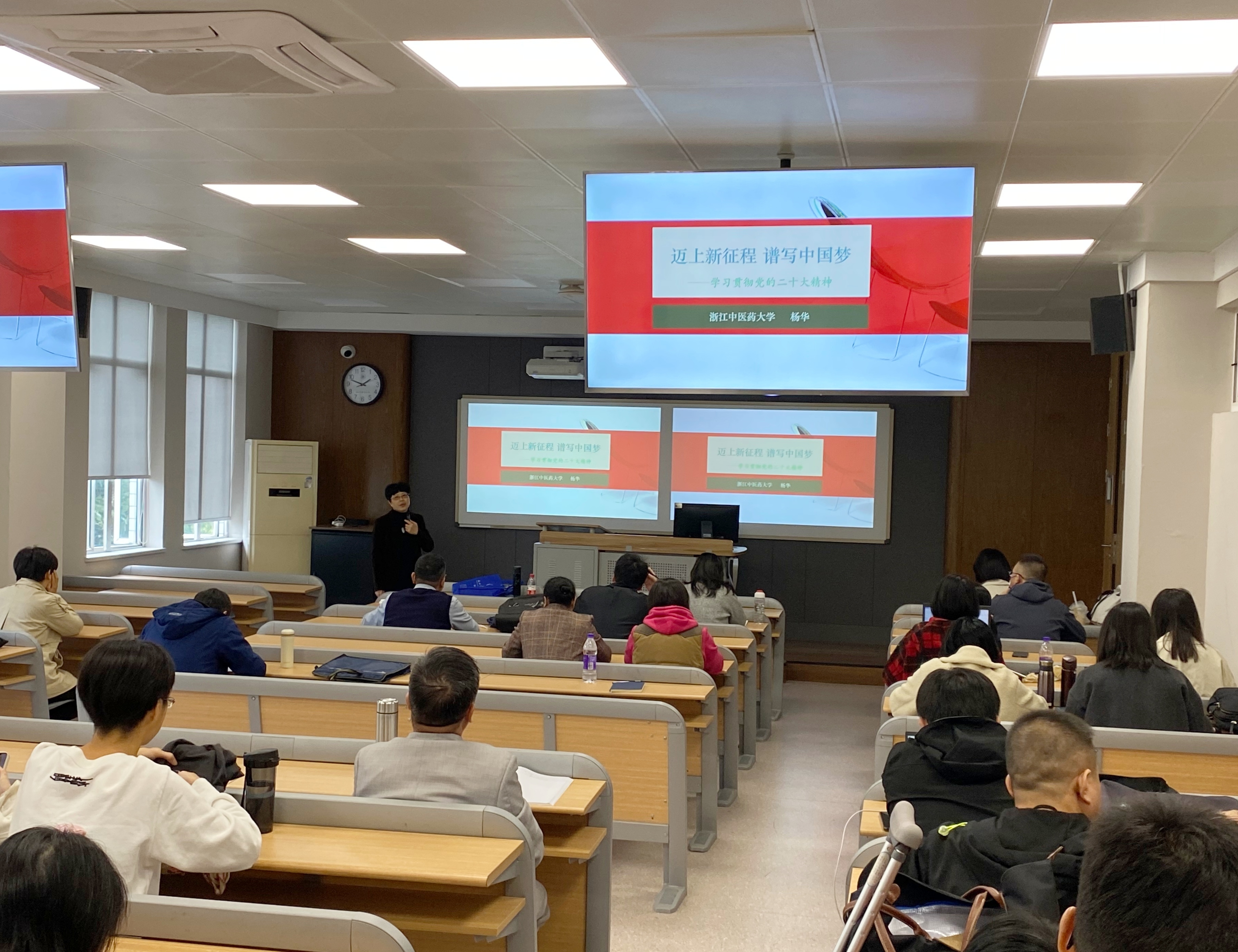 本次党的二十大精神宣讲活动,全面贯彻了上级党委的部署要求,充分体现了公司的学科特色优势,基本达到了增强吸引力感染力和针对性实效性的目标,对于把公司教职工的思想和行动统一到党的二十大精神上来,把力量凝聚到创建省重点马院和一流中医药大学的各项目标任务上来具有积极意义。