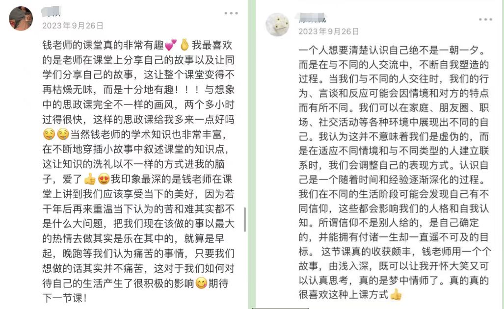 钱国玲导师团队项目成果《高校思想政治理论课“教员工活化”综合改革研究与实践》,是以老员工的现实生活为切入点,以立足生活的师生互动为连接点,实现以知识为载体的价值世界与以日常生活为基础的生活世界在思政课教学上的融通。经过五年改革实践,成效显著。首先员工的课堂获得感有所提升,师生关系日趋融洽。其次,在对生活的追问、思考和超越中,教师的师德、教学和科研水平均得到显著提升。在“教员工活化”改革过程中,师生以生活经验、理论体验展开对话,师生彼此照耀前行。