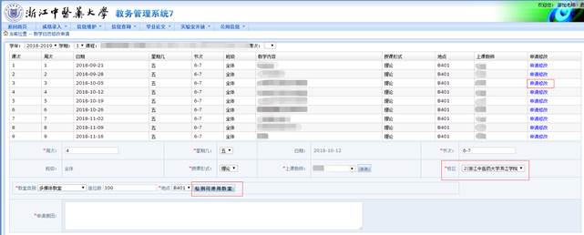 a.如果上课时间不变,上课教师变更,则其他信息无需更改,只需在上课教师一栏先点击