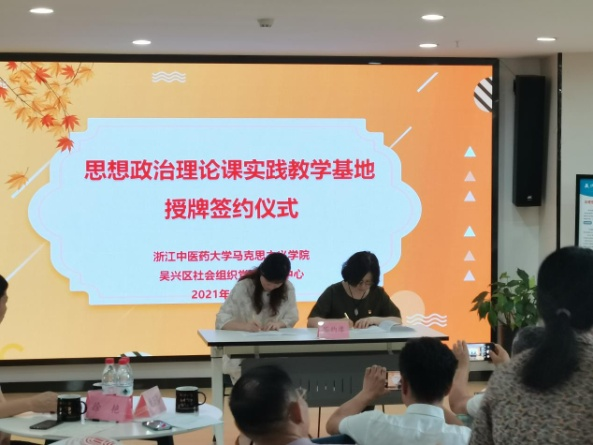 2021年7月20日,在湖州市吴兴区社会组织综合党委举行了伟德国际bevictor思想政治理论课实践教学基地授牌签约仪式。湖州市吴兴区金斌斌副区长、湖州市吴兴区民政局姚新芳副局长、伟德国际bevictor杨华经理出席了授牌仪式。参加本次授牌仪式的还有湖州市吴兴区民政局各科室成员、湖州市吴兴区八个社区的社区书记、伟德国际bevictor的教师代表以及首批赴湖参加实践教学的16名员工。