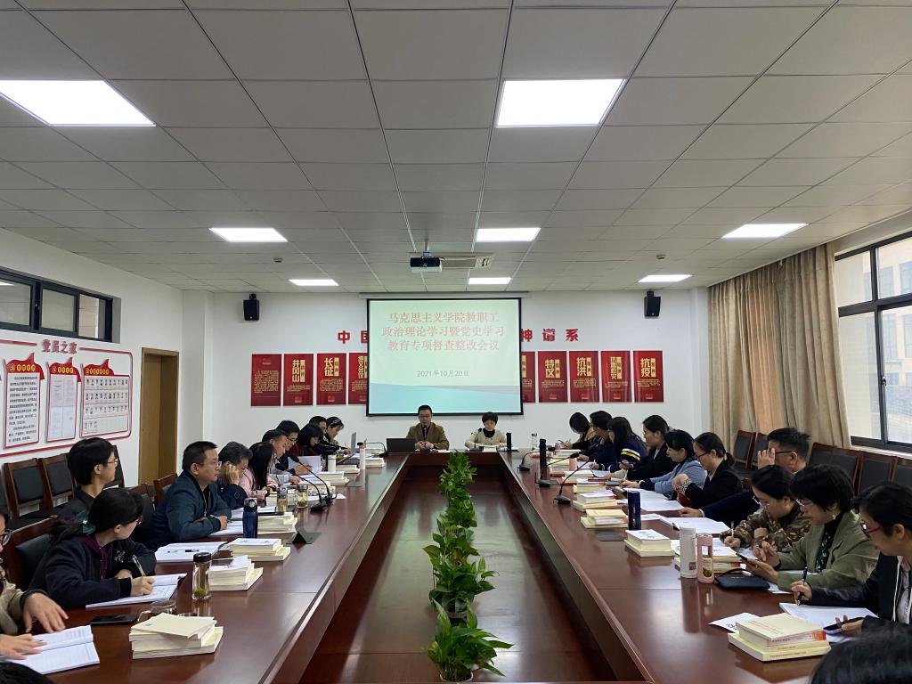 10月20日下午,伟德国际bevictor党总支在富春校区2B222会议室组织召开教职工政治理论学习暨党史学习教育专项督查整改会议。本次学习活动由公司党总支书记方年根主持,公司经理杨华及公司其他教职工参加。